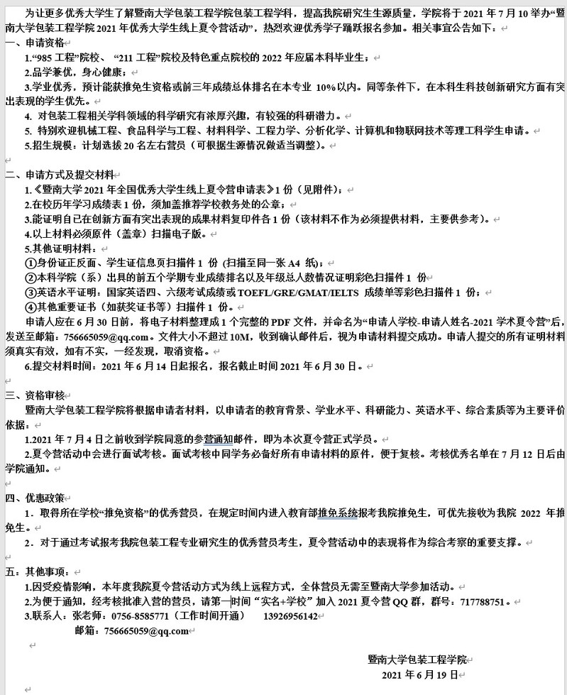 暨南大学2021年全国优秀大学生线上学术夏令营申请表.doc