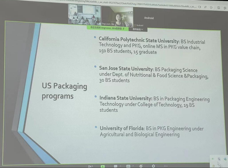 邀请,美国威斯康星大学副教授Min Liu DeGruson(刘敏)博士,通过腾讯会议线上开展以 “美国包装专业教育以及威斯康星大学包装专业教育”为主题的学术讲座。讲座由林勤保研究员主持,成人a片